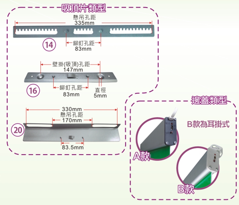 LED3.6W | 18顆 | 1.7W/1.8W | A款374*25*174 B款410*29*176 |
